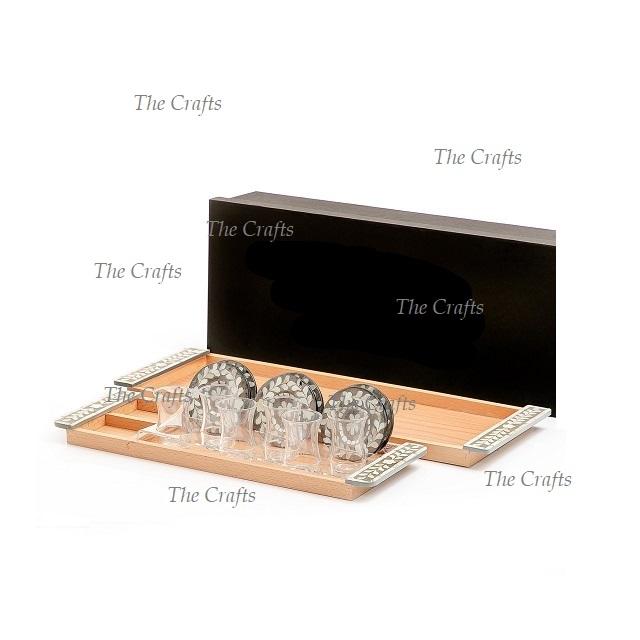 ถาดเสิร์ฟขนมหวานดีไซน์สวยงาม ทำจากอะคริลิค พร้อมด้ามจับไม้และที่รองแก้ว