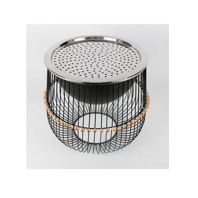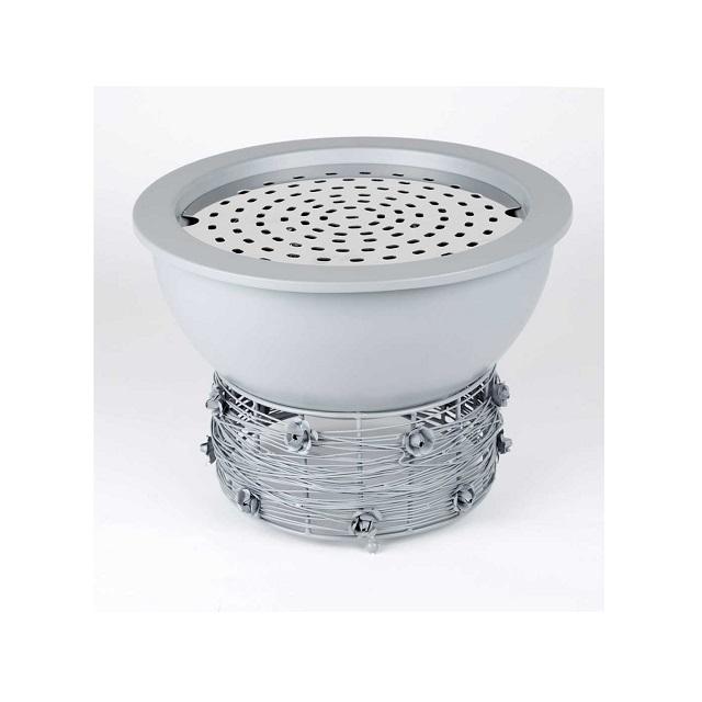 เตาไฟทำจากสเตนเลสสตีลและเหล็กเคลือบผงสีเทาพร้อมขาตั้งเหล็กจากอินเดียดีไซน์ยอดเยี่ยม