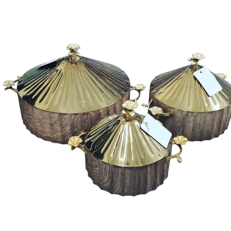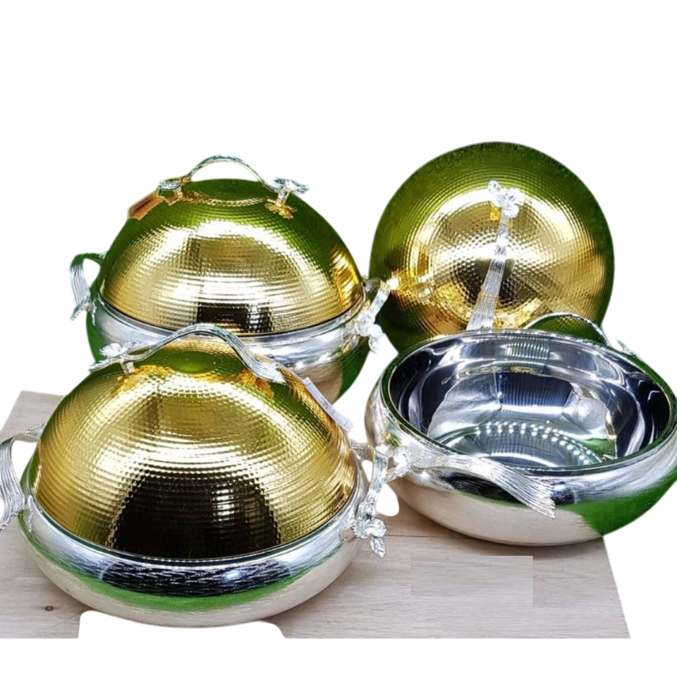 จานหม้อปรุงอาหารของหวานแบบมีผิวทองแดงทำจากสเตนเลสสตีลดีไซน์น่าสนใจสำหรับใช้ในงานปาร์ตี้
