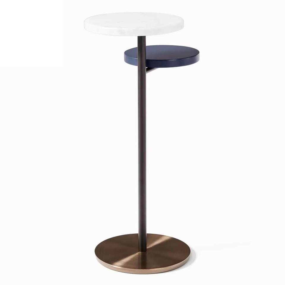 เฟอร์นิเจอร์ทองเหลืองและฐานไม้ที่มีด้านบนหินอ่อนสีขาวสำหรับตกแต่งบาร์และห้องนั่งเล่นดีไซน์น่าดึงดูดใจ