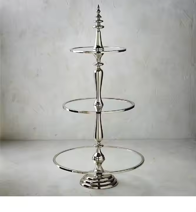 ชั้นวางเค้กโลหะ 3 ชั้น ดีไซน์สวยงาม สีเงินนิกเกิล ดีไซน์คลาสสิก ทำด้วยมือ รับสั่งทำ สำหรับใช้ตกแต่งบ้านและร้านอาหาร