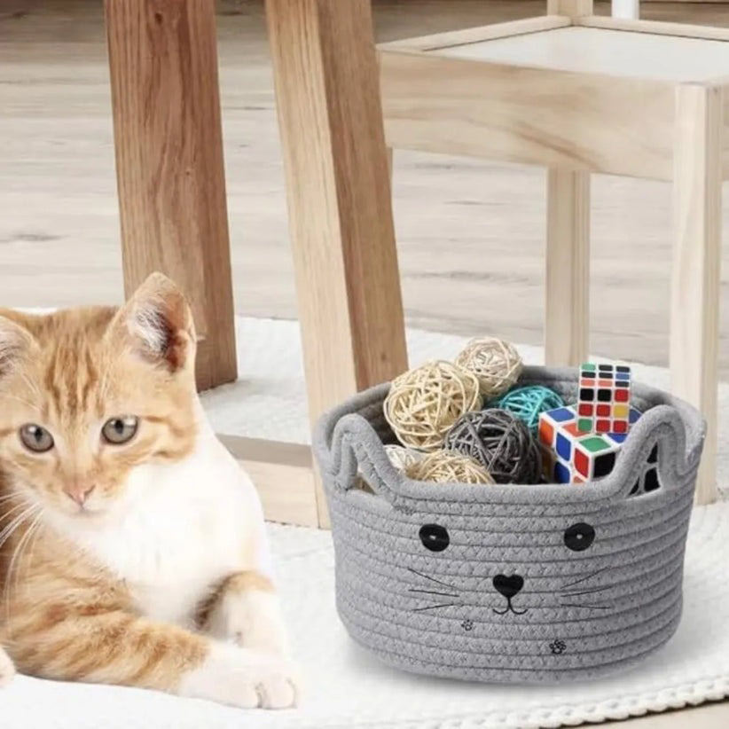 ตะกร้าทอเชือกคอตตอนแท้ดีไซน์รูปแมวออกแบบได้ตามต้องการตะกร้าสำหรับใช้ในบ้านอุปกรณ์ตกแต่งตะกร้า