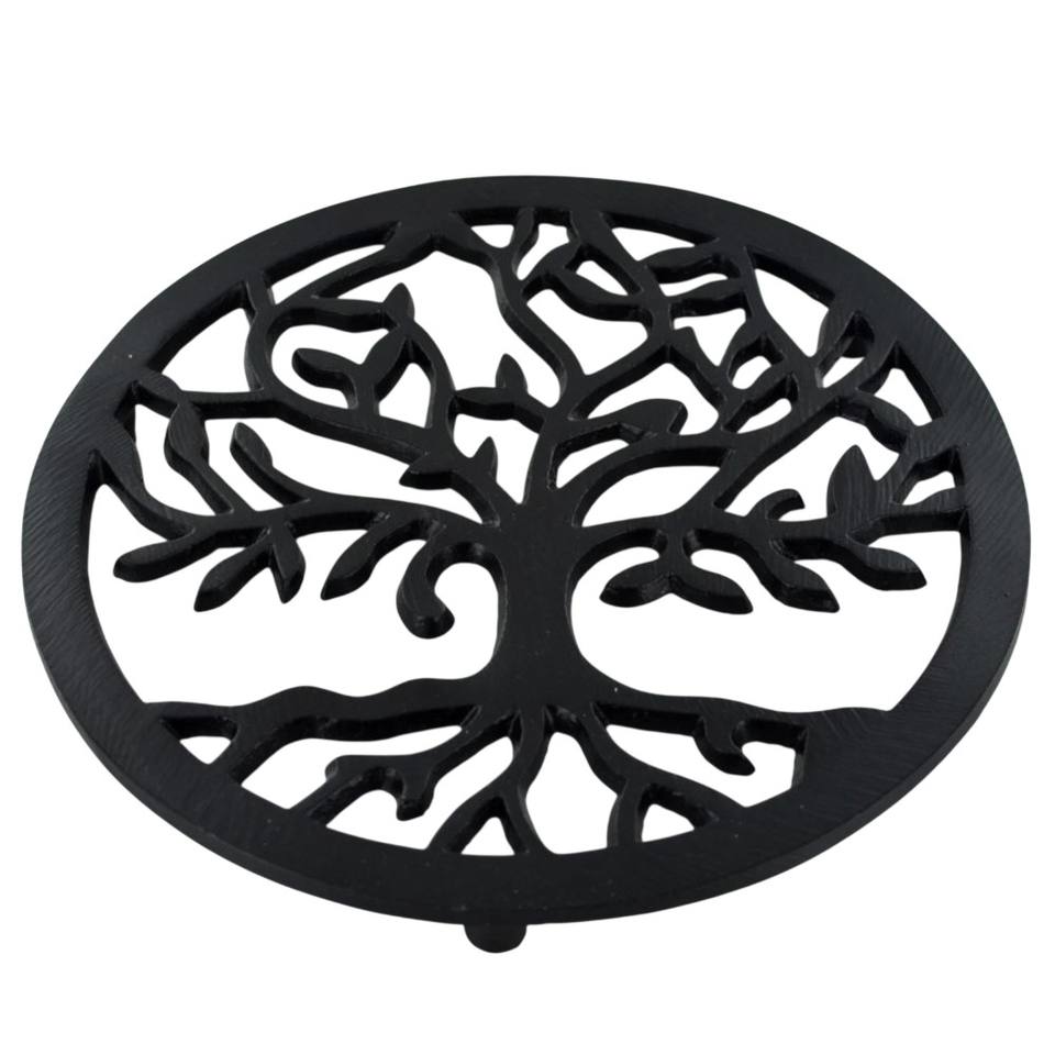 ที่รองหม้อโลหะลายใบไม้ทรงกลม ดีไซน์สวยงาม สำหรับรองภาชนะร้อนและกระทะ ป้องกันเคาน์เตอร์ครัวและโต๊ะ