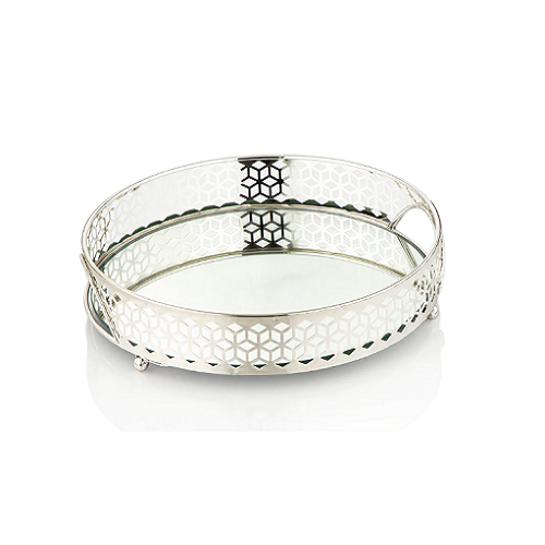 Attractive Design Round Shape Dessert Serving Tray In Stainless Steel Silver Color Food Snacks Tray At Lowest Prices