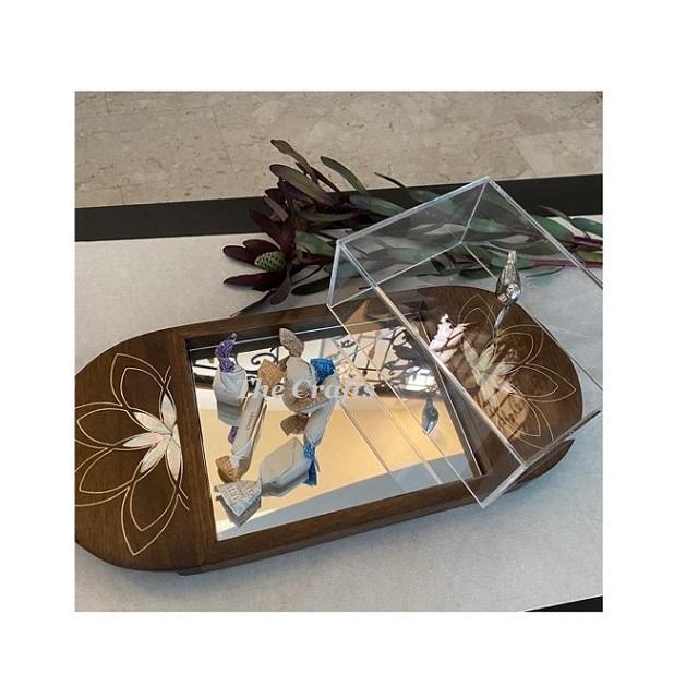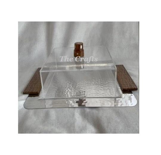 Stainless Steel And Wooden Serving Tray With Acrylic Cover Finest Quality Snacks Dessert Tray With Cover