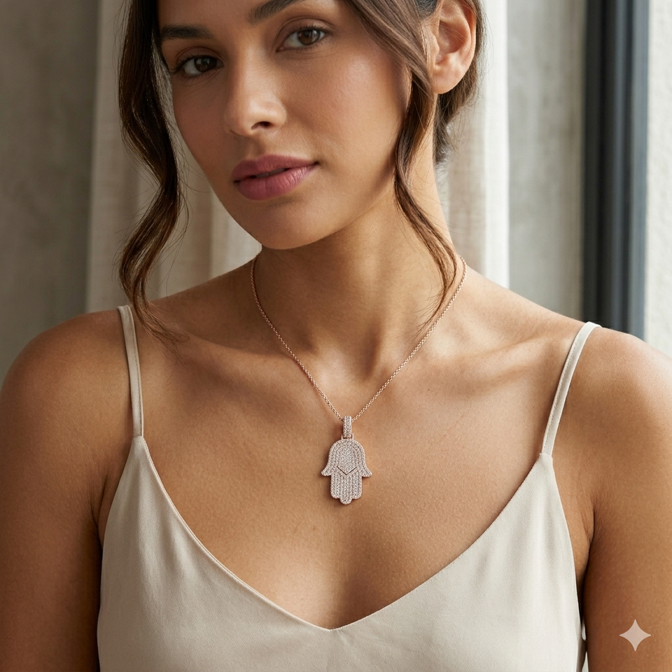 จี้เพชรแฮมซาแฮนด์ฝังเพชร VVS-VS