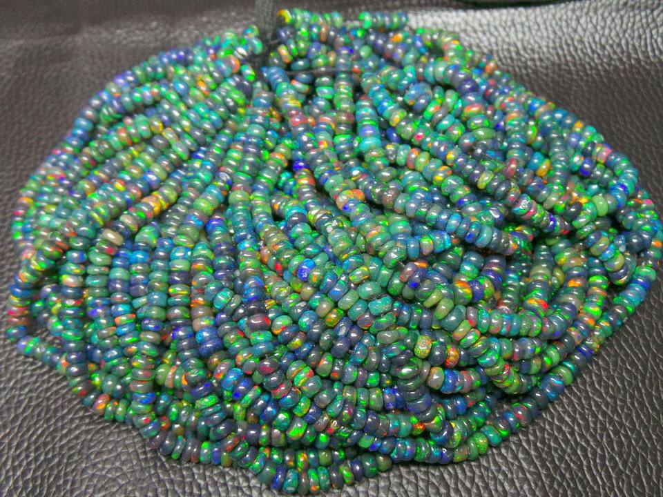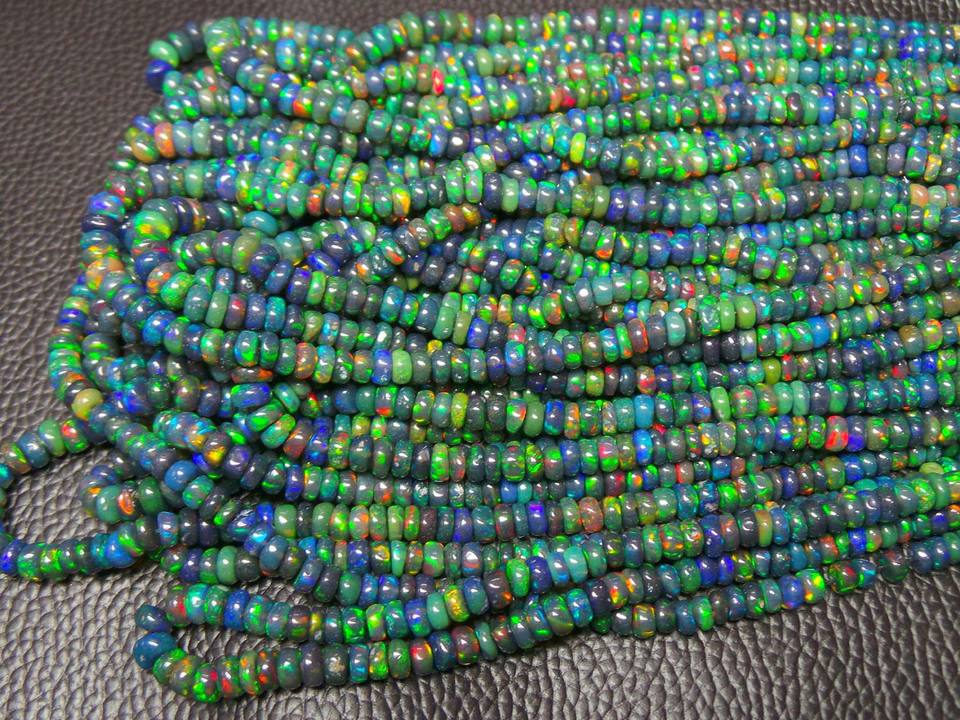 ลูกปัดโอปอลสีดำ Ethiopian ที่น่าสนใจลูกปัดโอปอลไฟสีดำพลอยโอปอลขัดเรียบขนาด3-4มม.
