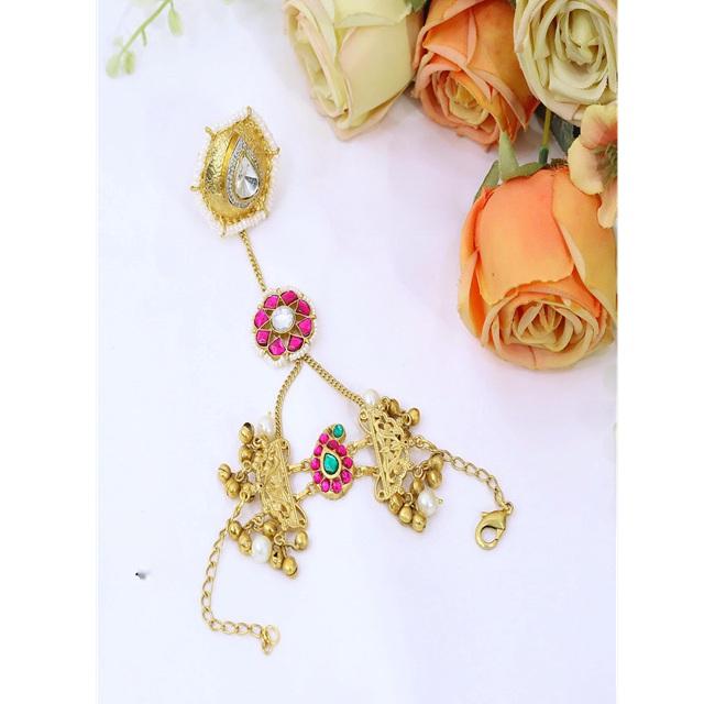 สร้อยข้อมือทองเหลืองชุบทองคุณภาพพรีเมียมประดับมุกคุณภาพสูง ดีไซน์สวยงามแบบอินเดียดั้งเดิม เหมาะสำหรับงานแต่งงาน