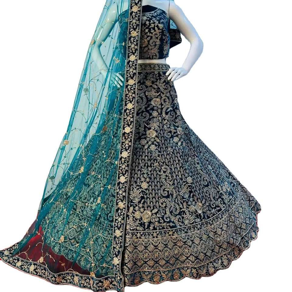 ชุดเลเฮนกาโชลีสำหรับงานแต่งงานแบบอินเดีย ดีไซน์ทันสมัย สวยงาม คุณภาพสูง ตกแต่งด้วยลูกไม้ลายดอกไม้ พิมพ์ลายดอกไม้ ผ้ากำมะหยี่ยาวคลุมเท้า