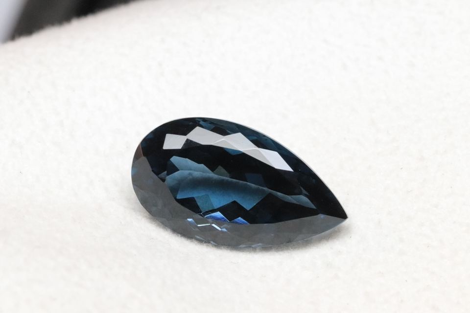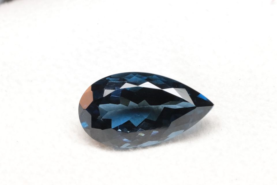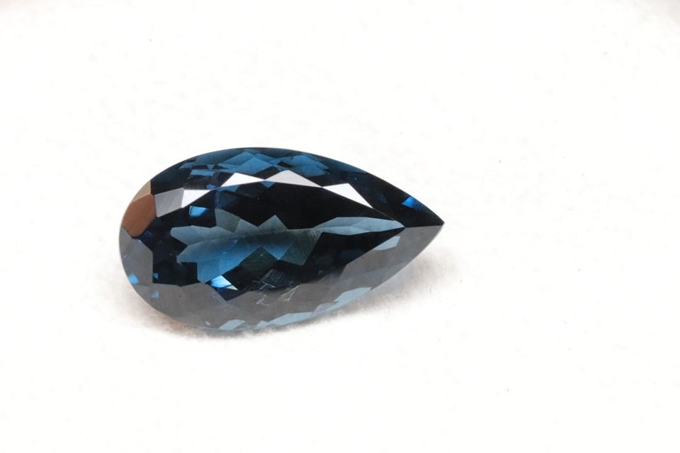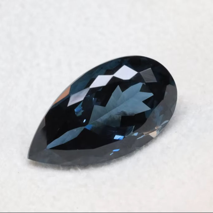พลอยโทแพซลอนดอนบลูทรงลูกแพร์ขนาด 12x8 มม. ทรงเหลี่ยมเจียระไน ราคาขายส่ง