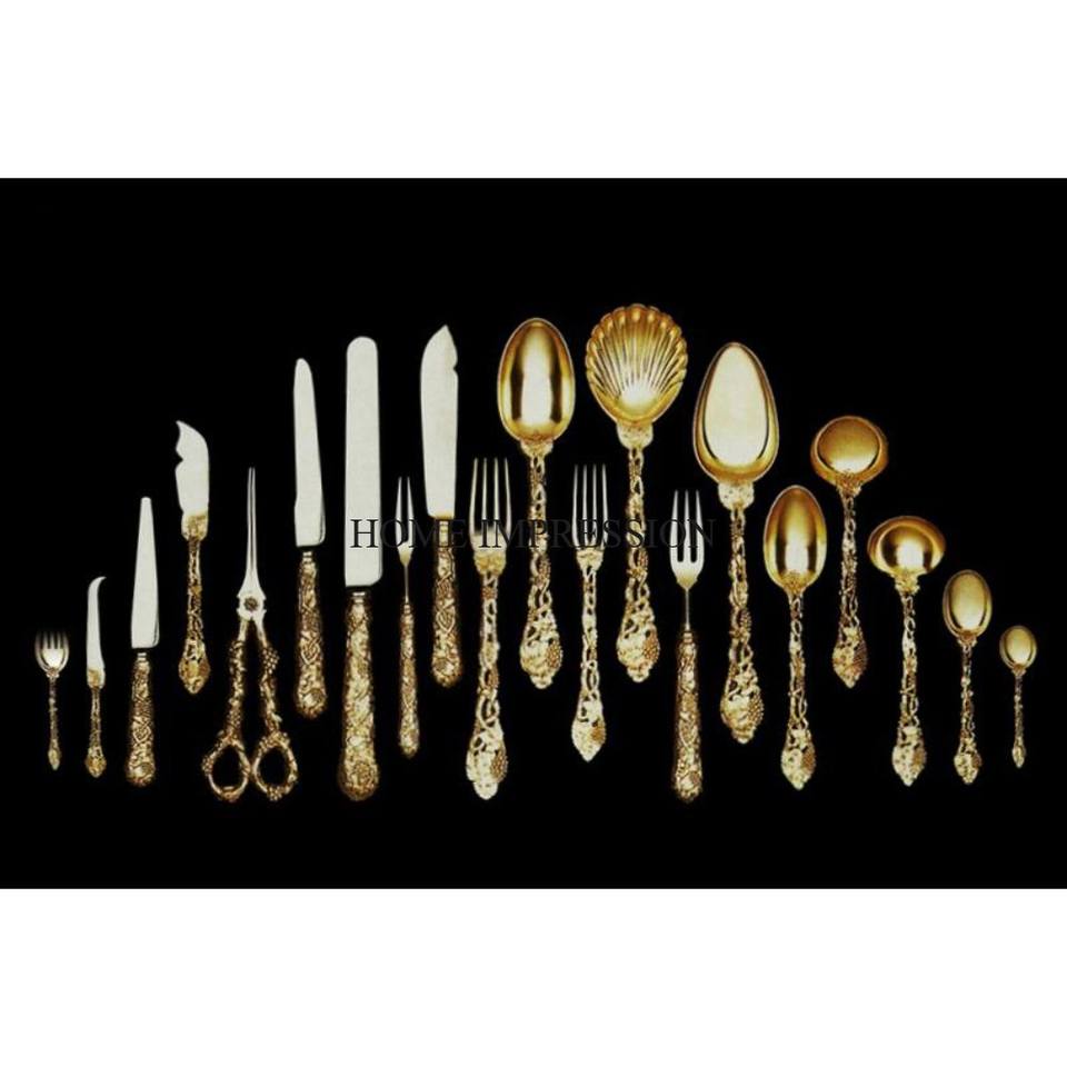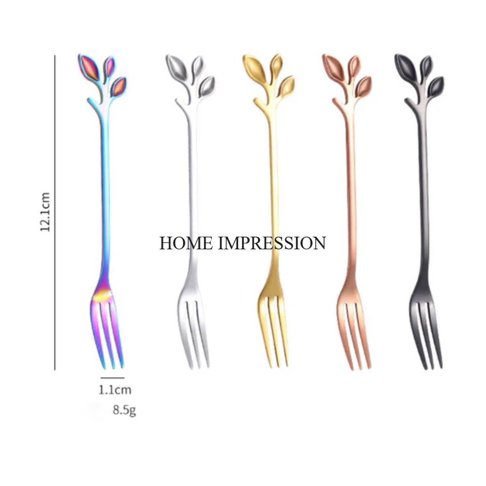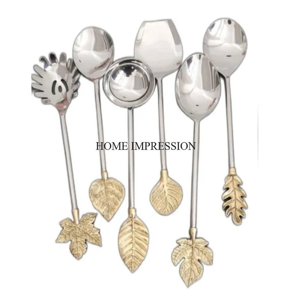 ชุดช้อนส้อมอลูมิเนียมชุบทองดีไซน์ทันสมัย ลวดลายดอกไม้ใบไม้ ด้ามจับสวยงาม ชุด 5 ชิ้น ใช้กับเครื่องล้างจานได้