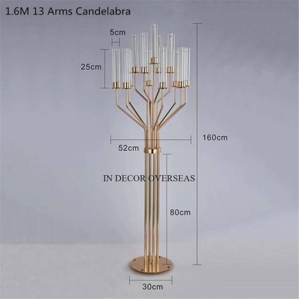 เชิงเทียน5แขนทำจากอลูมิเนียมเงางามพร้อมที่แขวนคริสตัลอุปกรณ์ตกแต่งงานแต่งงาน