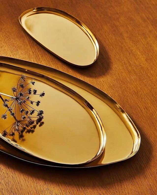 ถาดเสิร์ฟโลหะทำมือ ดีไซน์ทันสมัย หรูหรา สวยงาม ทนทาน พร้อมการเคลือบผิวที่เป็นมิตรต่อสิ่งแวดล้อม คุณภาพสูง เหมาะสำหรับเป็นของขวัญ ผลิตในอินเดีย