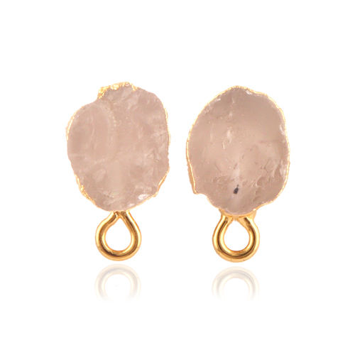 ต่างหูแบบติดหูประดับด้วยโรสควอตซ์ธรรมชาติเคลือบทอง ดีไซน์สวยงาม เหมาะสำหรับเป็นเครื่องประดับ DIY ทำจากทองเหลืองอย่างดี