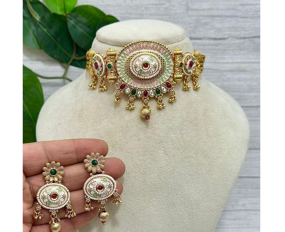 ชุดสร้อยคอพร้อมต่างหูทองเหลืองชุบทองประดับมอยส์ซาไนต์คุณภาพพรีเมียม ดีไซน์แบบคุนดัน โพลกี ราชวาดี เหมาะสำหรับเป็นของขวัญแบบดั้งเดิมสำหรับผู้หญิง