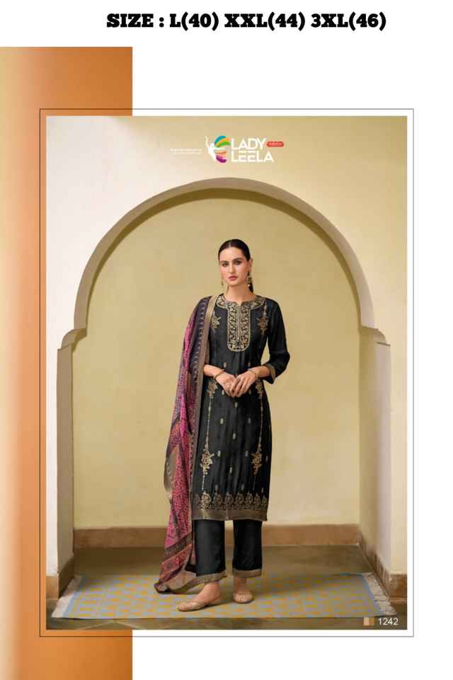 Product Name:Attractive Pure Viscose Jacquard With Handwork Kurti Pant And Dupatta
