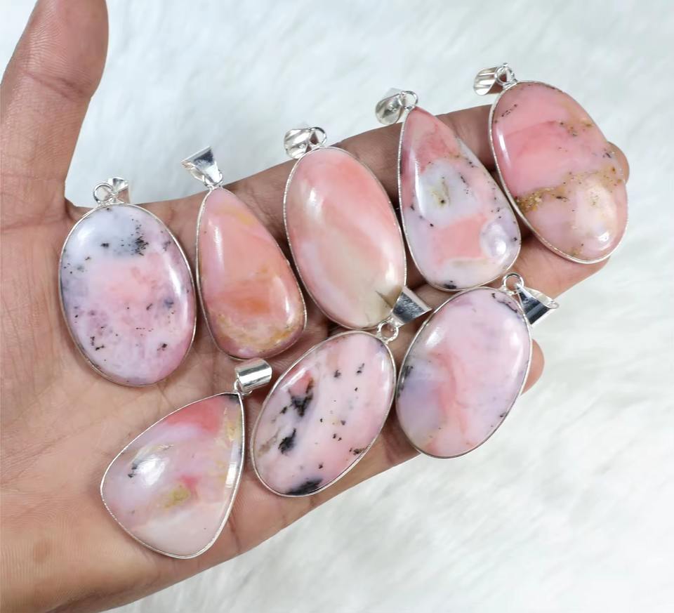 ชื่อผลิตภัณฑ์:จี้ชุบเงินโอปอลอัญมณีสีชมพูธรรมชาติ