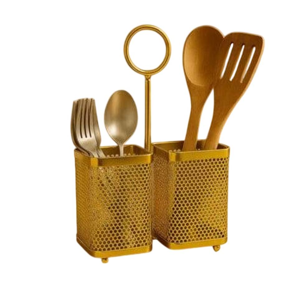 ที่วางช้อนส้อมสแตนเลสสองชั้นสีโรสโกลด์สวยงาม สำหรับเก็บช้อน ส้อม ตะเกียบ