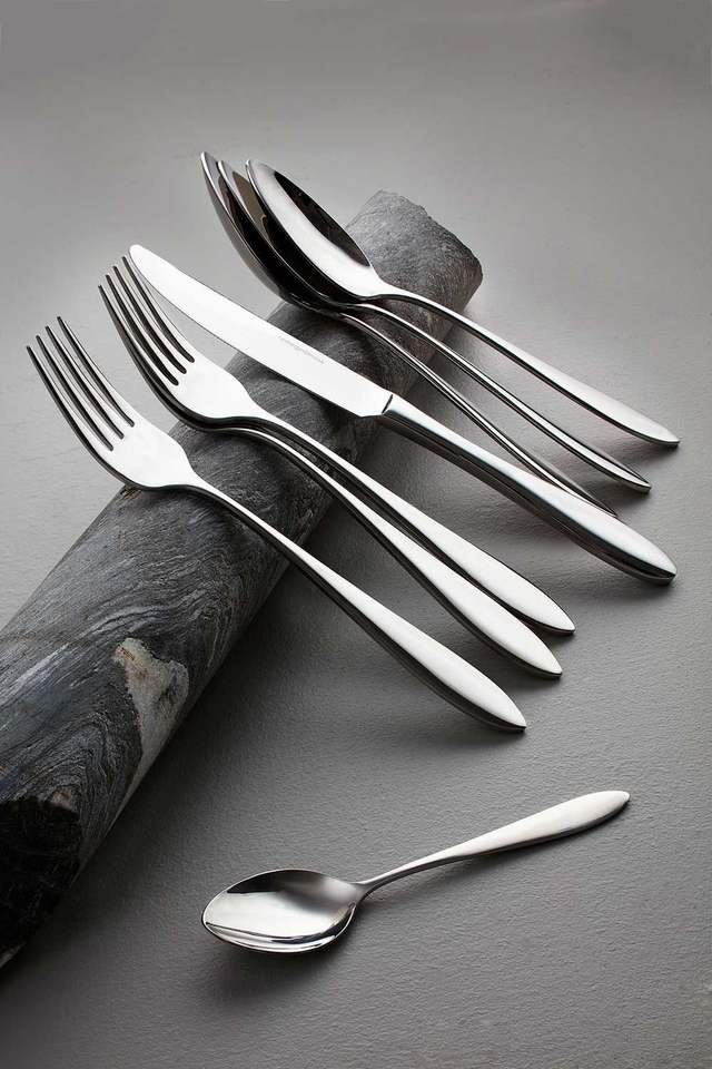 ชุดช้อนส้อมสแตนเลสแสนสวยที่มีรูปลักษณ์ทันสมัยออกแบบมาสำหรับพื้นที่รับประทานอาหารระดับมืออาชีพในโรงแรมและงานเฉลิมฉลอง