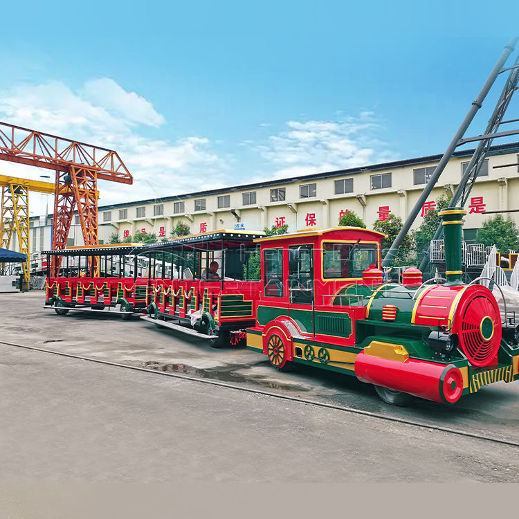 รถไฟฟ้าไร้รางเหล็กดีไซน์สวยงามสำหรับสวนสนุกและงานแสดงสินค้า เหมาะสำหรับเด็กๆ ใช้ในเชิงพาณิชย์