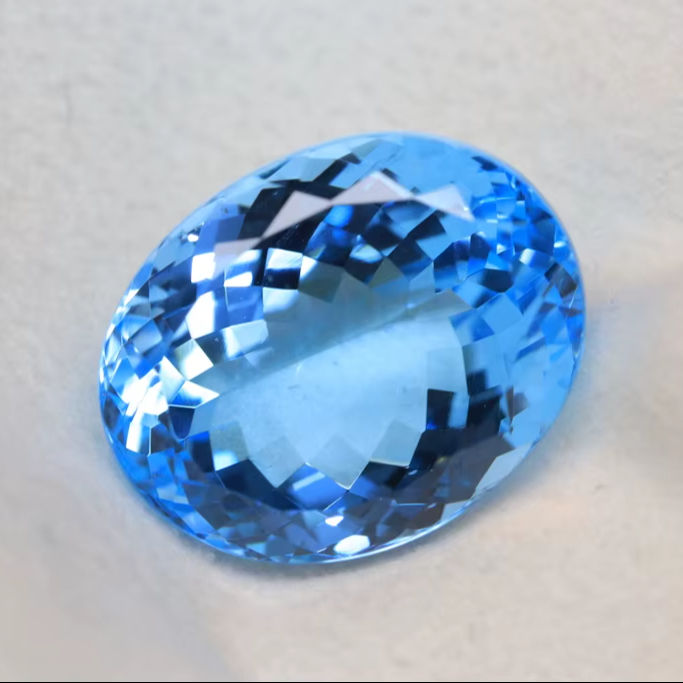พลอยบลูโทแพซสวิสทรงรีขนาด 7x5 มม. ทรงเหลี่ยมเจียระไนจากบราซิล สวยงามน่าดึงดูดใจ