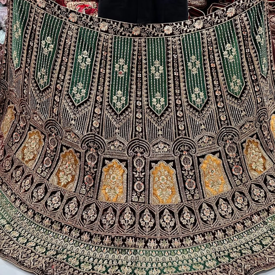 Lehenga ผ้ากำมะหยี่11000งาน jarkan หนักตัดแปะ