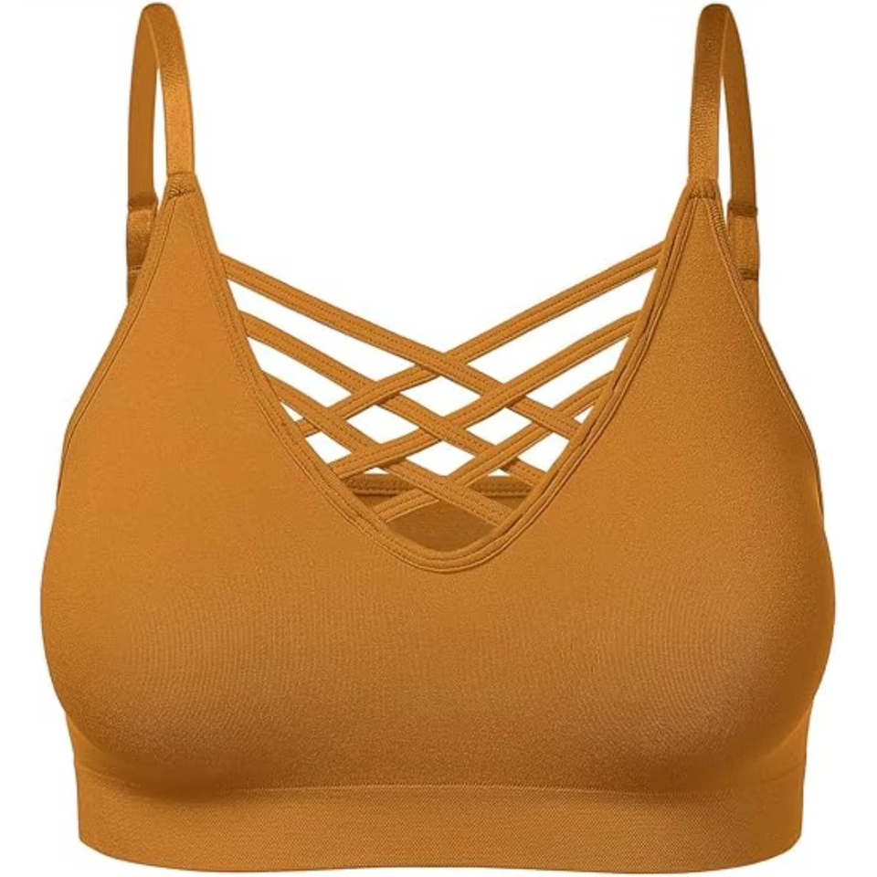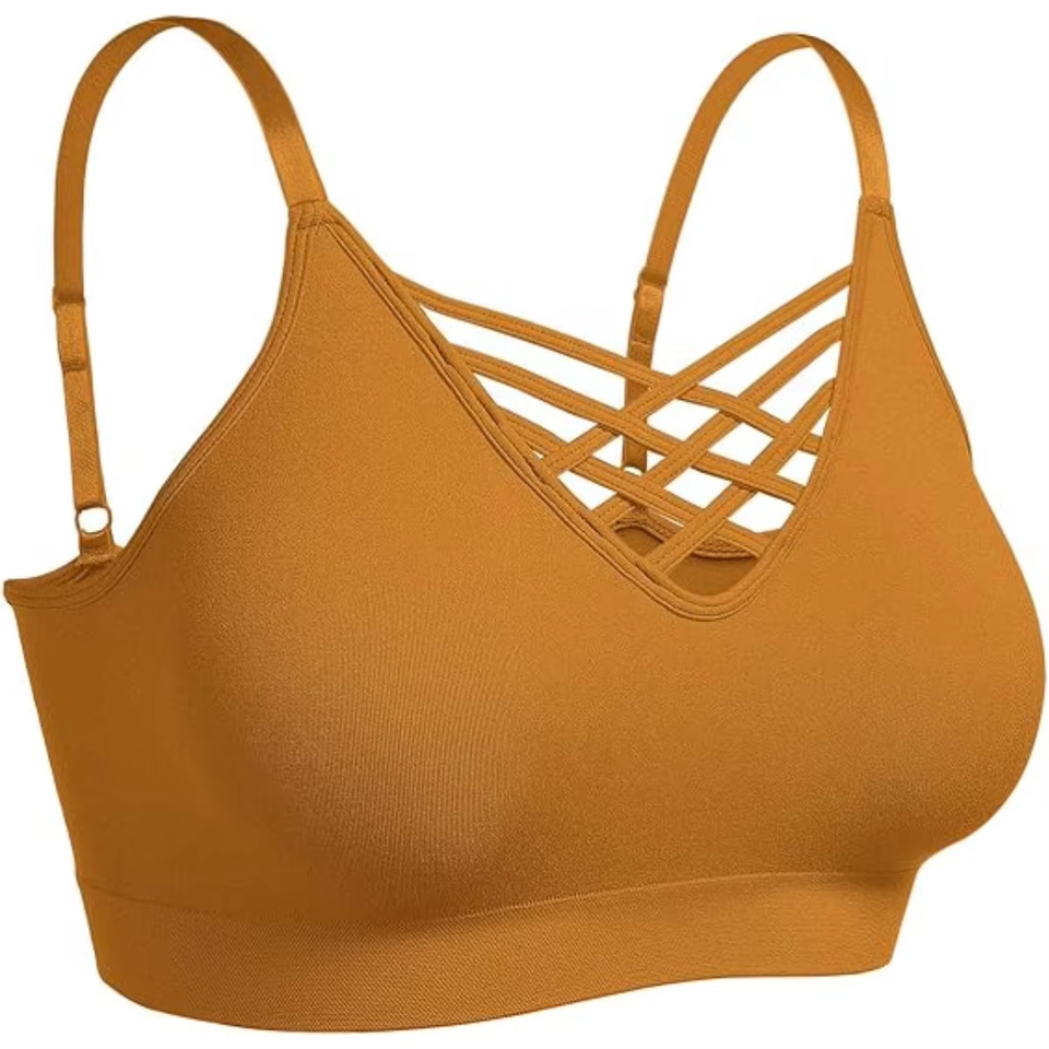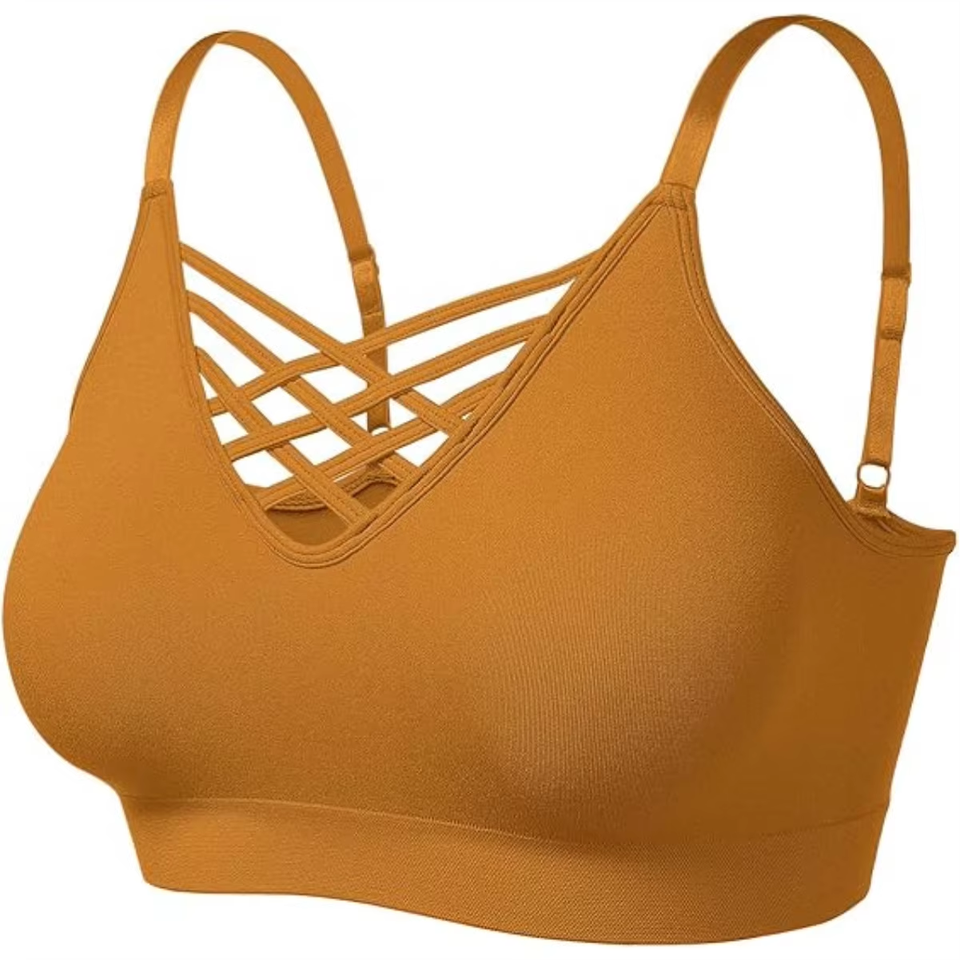 สปอร์ตบราสำหรับผู้หญิงที่ดูดีมีเสน่ห์พร้อมสายรัดคู่ – ผ้าเนื้อนุ่มยืดหยุ่นเพื่อความสบายในการออกกำลังกาย โยคะ และการใช้งานทั่วไป