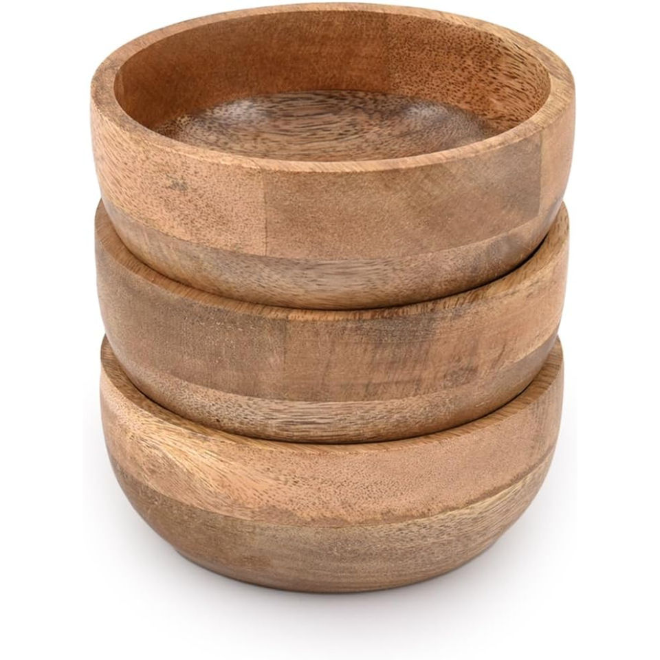 ชุดชามสลัดไม้สวยงาม 4 ใบ ชามไม้ทรงกลมทำมือจากวัสดุธรรมชาติ สำหรับโต๊ะอาหารในครัว ราคาประหยัด