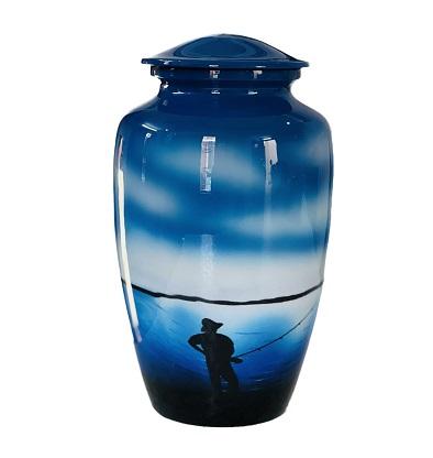 โกศที่ระลึกสำหรับผู้ใหญ่สีฟ้าคลาสสิกอลูมิเนียมคุณภาพสูงสำหรับเผาศพใช้ในงานศพ