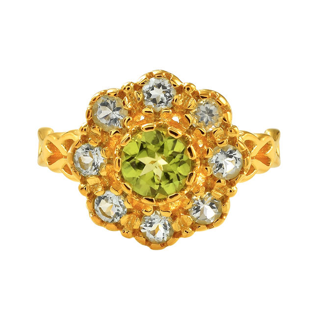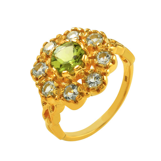 แหวนพลอยหลากชนิด ดีไซน์หรูหรา ชุบทองคำแท้ 925 ประดับเพอริดอทและบลูโทปาซสวิส เหมาะสำหรับเป็นของขวัญงานแต่งงาน
