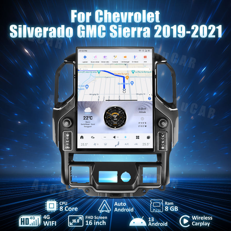 เครื่องเล่นดีวีดี15.6 "ล่าสุด Tesla Android 13ระบบนำทาง GPS สำหรับ GMC Sierra Chevrolet Silverado 1500อุปกรณ์เสริม2019-2023