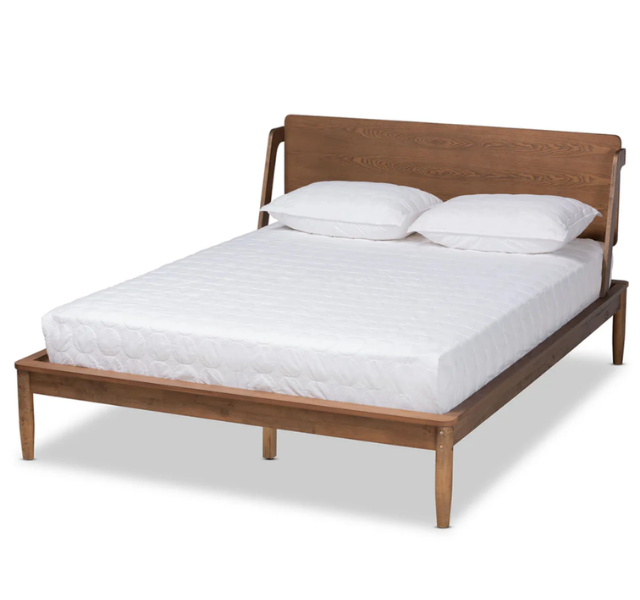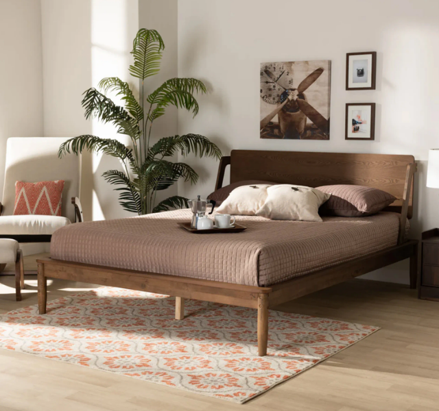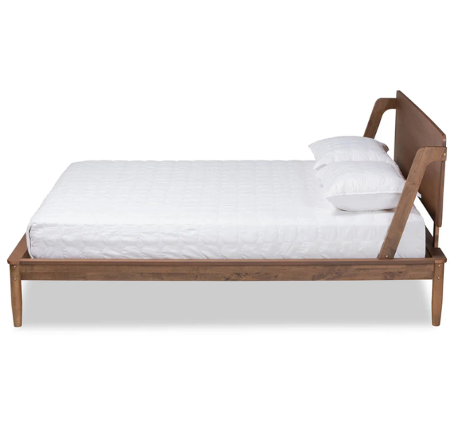 เตียงไม้สักแท้สไตล์โมเดิร์นมินิมอล Auberge du Soleil หัวเตียงโค้ง ขาเรียว สไตล์สแกนดิเนเวียน สีธรรมชาติ รับประกัน 3 ปี