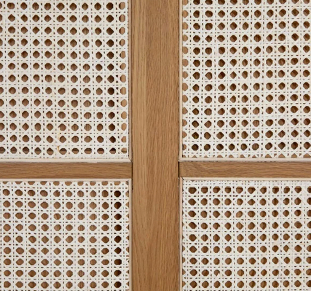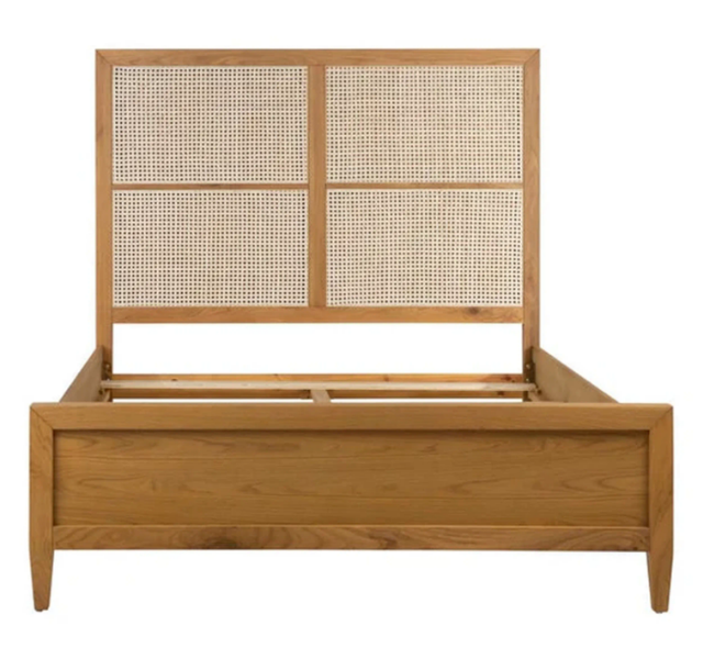 Auberge Du Soleil Modern Solid Teak Wood Bed Frame Rattan Panel Headboard Minimalist Platform Bed King Size Comfortable