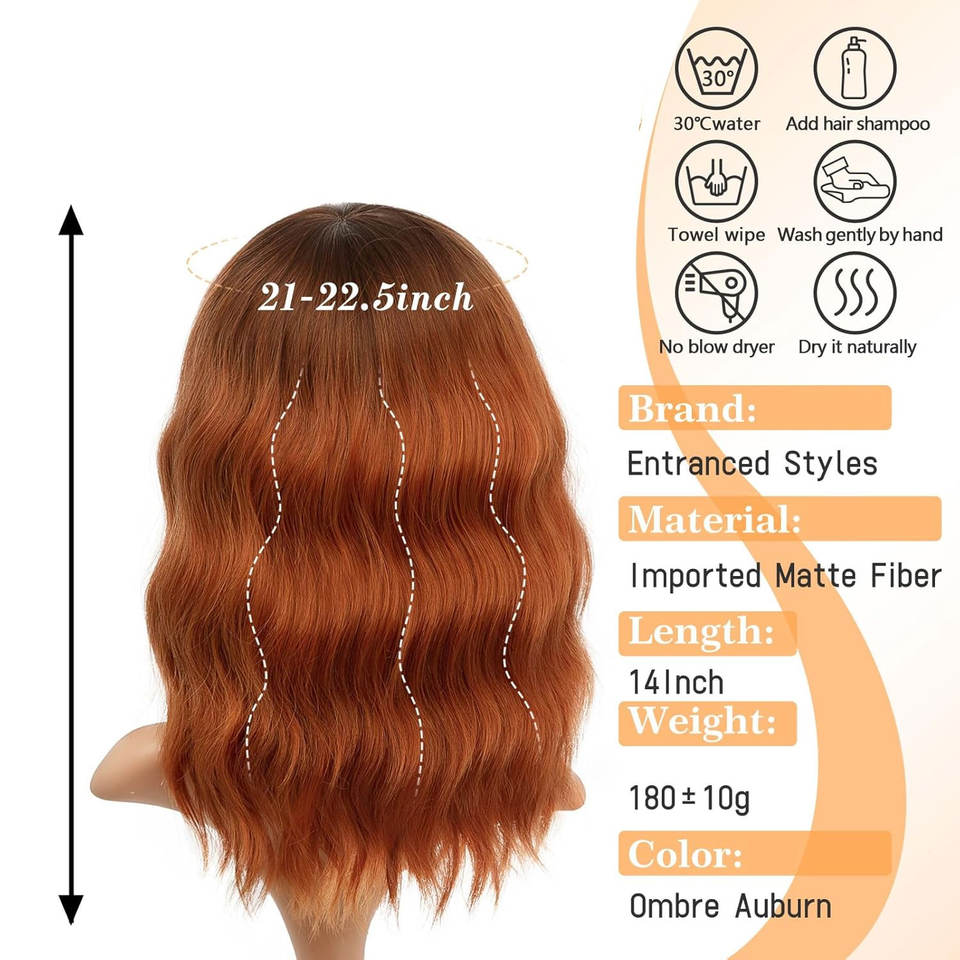 วิกผมสีบลอนด์สั้นมีผมม้าสำหรับผู้หญิงอายุ14นิ้วยาวสะพายไหล่ผมสังเคราะห์หยักศกทนความร้อนดูเป็นธรรมชาติ
