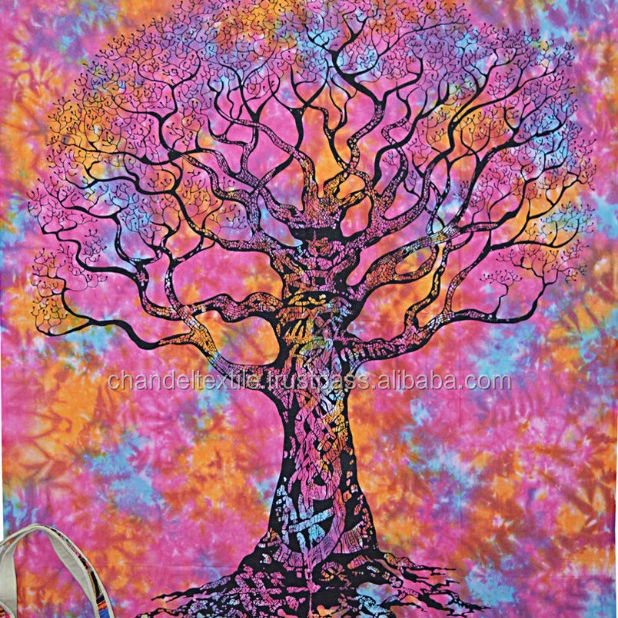 Aubusson ผ้าทอลายฮิปปี้สไตล์โบฮีเมียนแบบมัดย้อมพิมพ์ลายแบบแขวนผนังผ้าคลุมเตียงโยนสำหรับห้องนั่งเล่นของตกแต่งบ้าน