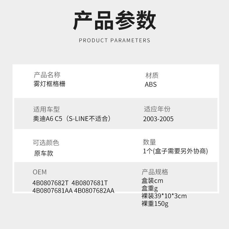 กรอบไฟตัดหมอก Audi A6 C5 ปี 2003-2005 วัสดุ ABS พลาสติก ฝาครอบกระจังหน้า ตะแกรงระบายอากาศ ด้านหน้าส่วนล่าง รุ่น D007 D067