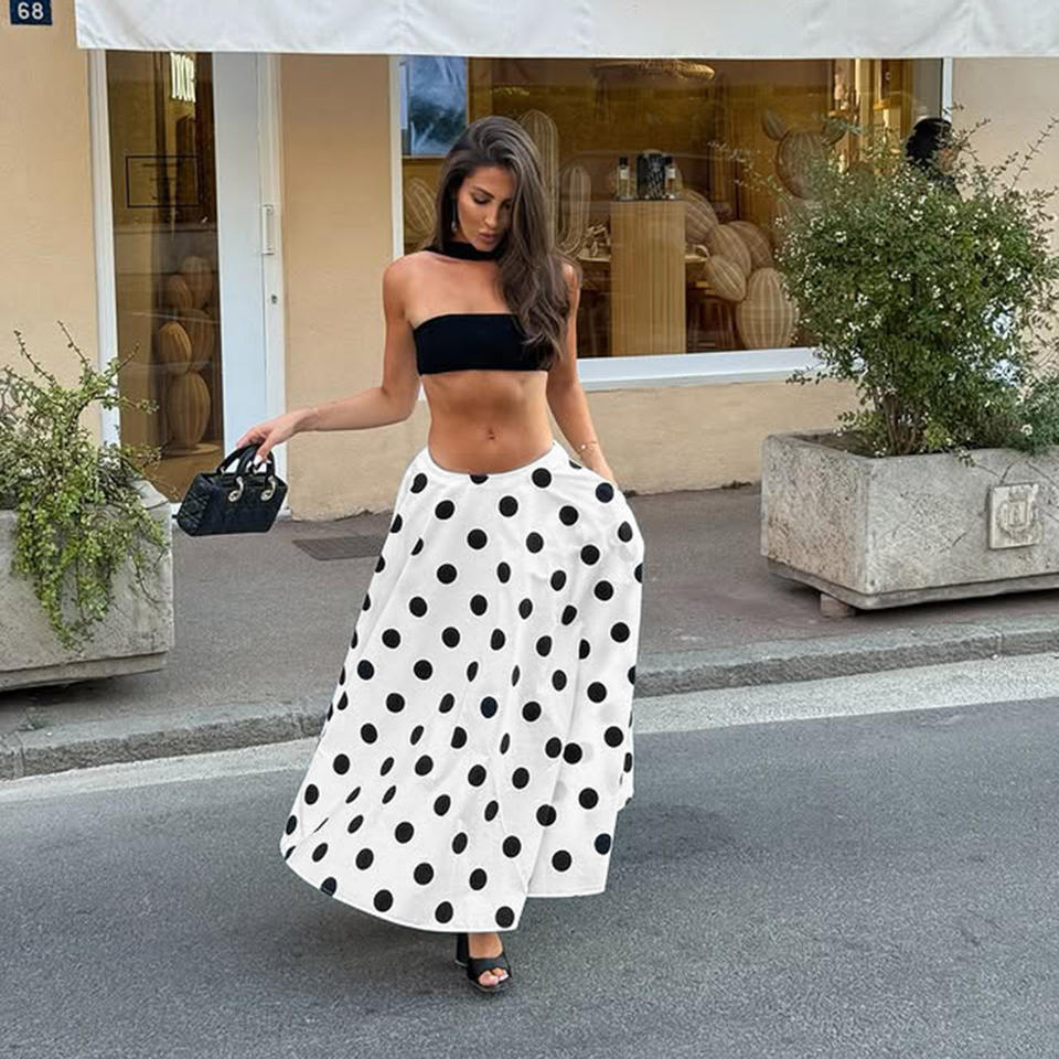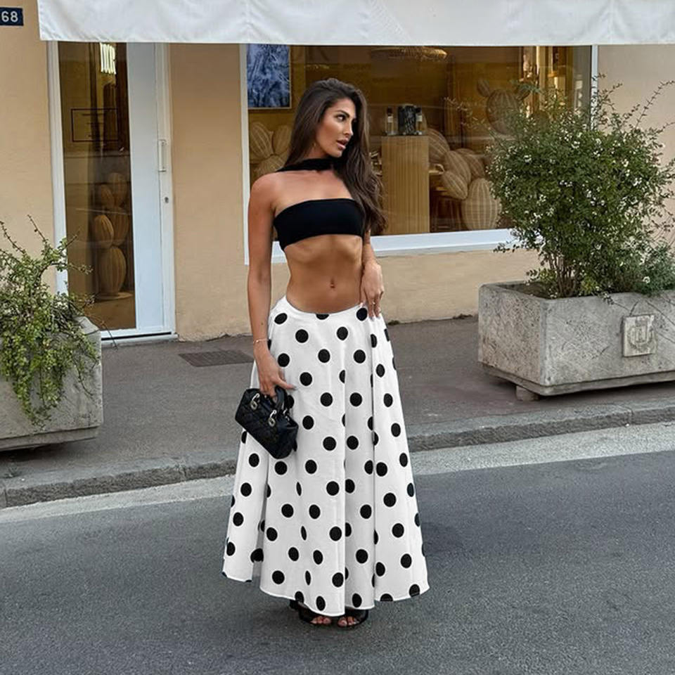 กระโปรงทรงเอลายจุดสไตล์ฝรั่งเศสแบบออเดรย์ เฮปเบิร์น เอวต่ำ ทรงหลวม กระโปรงยาวปานกลางสำหรับฤดูใบไม้ร่วง