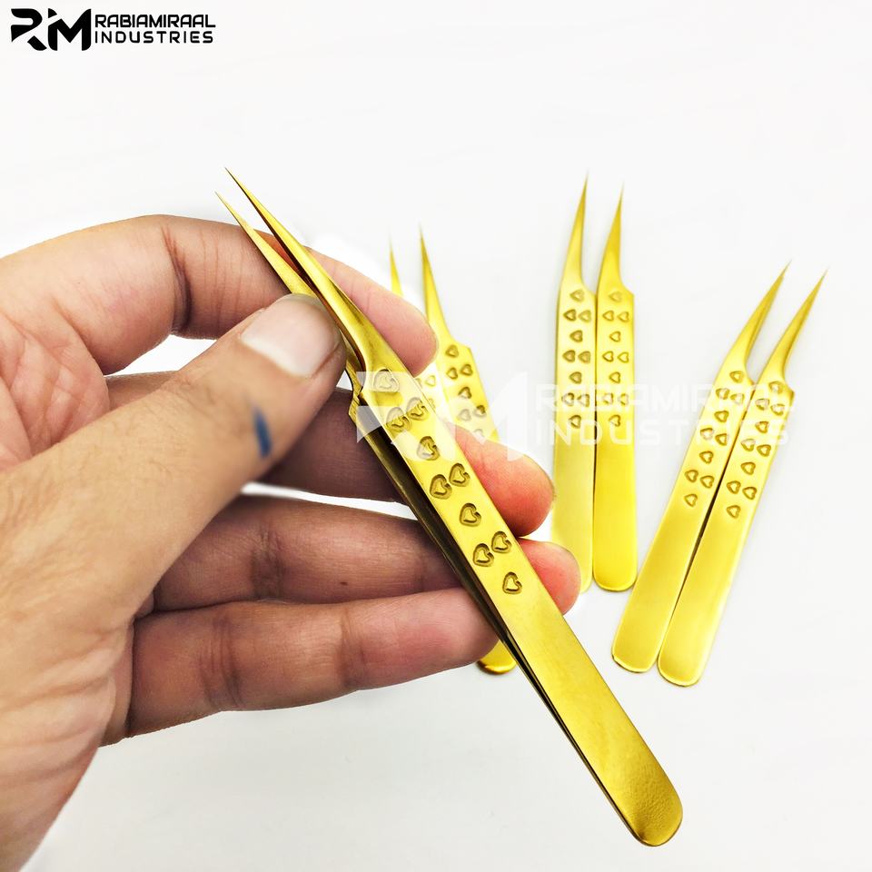 คีมคีบขนตาสเตนเลสปลายตรงสีทอง RMI