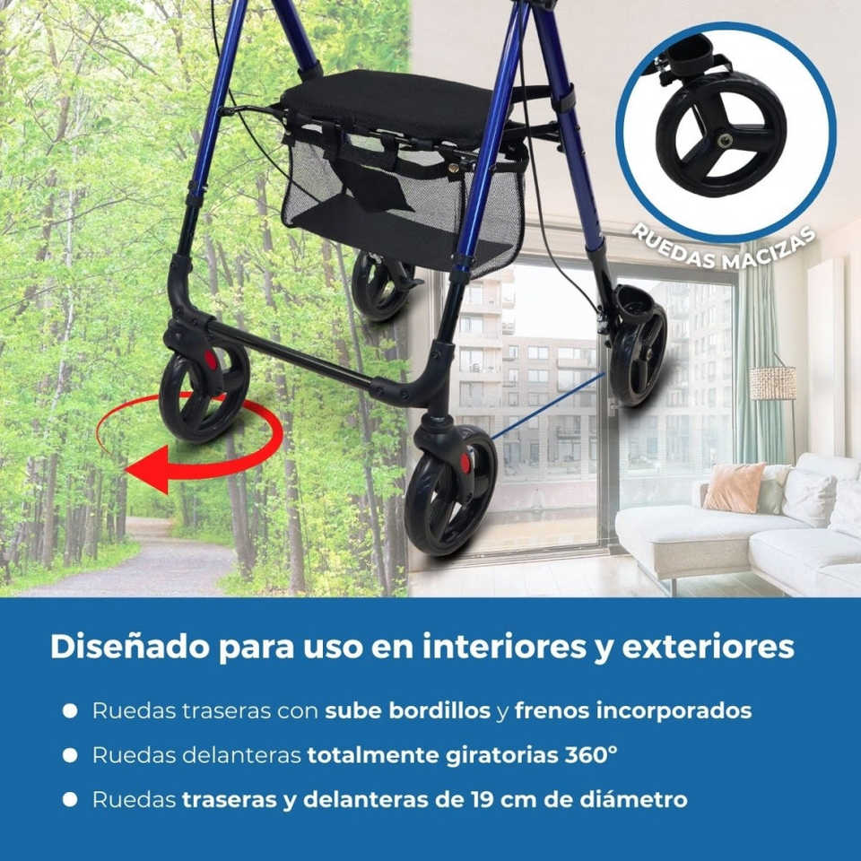 Augusto mobiclinic เบรคมือจับอลูมิเนียมพับได้4ล้อปรับระดับความสูงได้2ระดับสำหรับปรับความสบาย