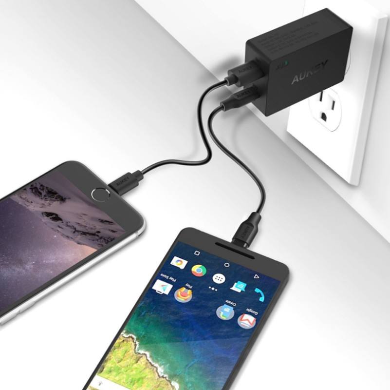อะแดปเตอร์ชาร์จเร็ว Aukey PA-Y2 Quick Dual Charging 3.0 สำหรับโทรศัพท์มือถือ แท็บเล็ต ชาร์จเร็ว ใช้ได้ทั่วโลก ช่องเสียบ USB Type C