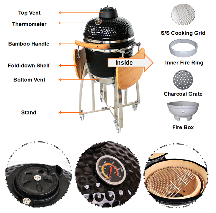 Auplex เตาย่างคอมโมโดะคามาโดะรถเข็นสแตนเลสเซรามิก18นิ้วอุปกรณ์บาร์บีคิวกลางแจ้งเครื่องใช้ในสวน asador de CARBON