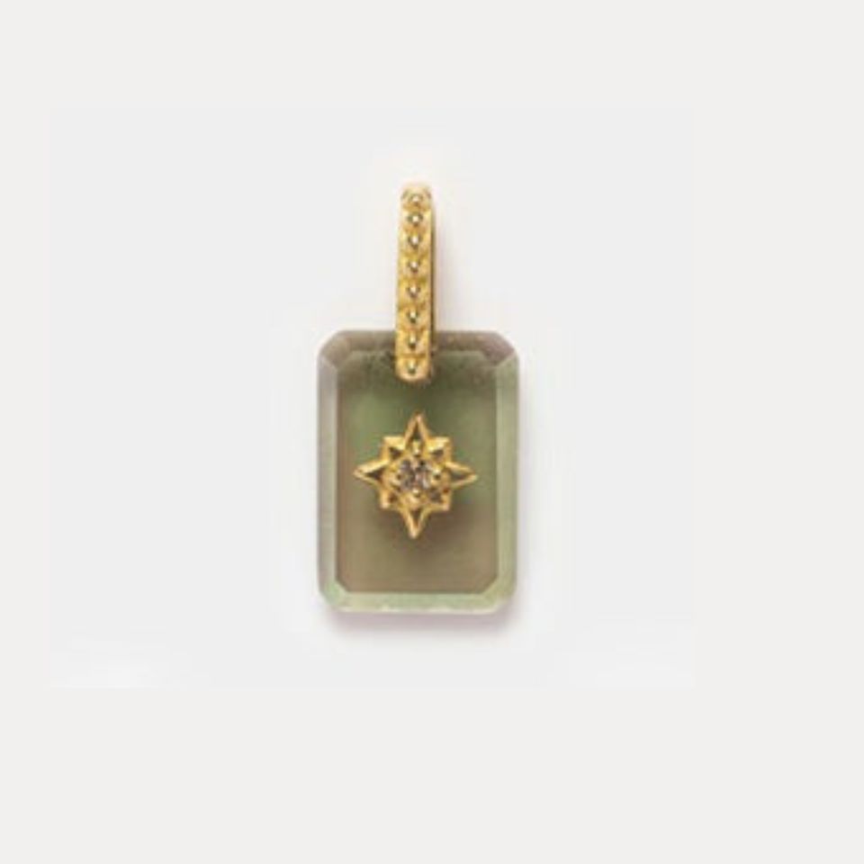 กลิ่นอายควอตซ์ทรงสี่เหลี่ยมผืนผ้าเสน่ห์เน้น North Star CZ ชุบทองด้วยเงินสเตอร์ลิงเครื่องประดับอัญมณีสีรุ้งทำด้วยมือ