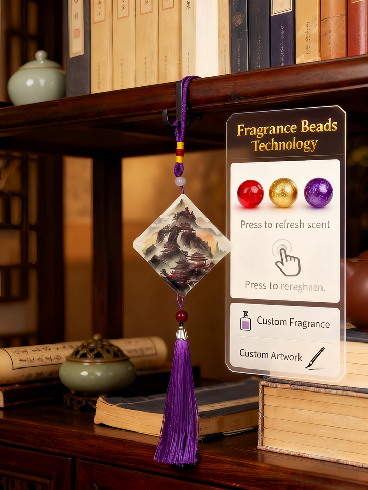 Aurasphere ตกแต่งแขวนกลิ่นหอมในรถและบ้าน-วัสดุกระดาษสไตล์จีนนำความโชคดีมาปรับแต่งกลิ่นหอม/โลโก้