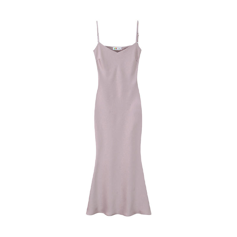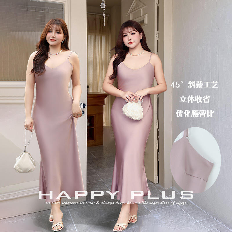 ชุดเดรสทรงปลายหางปลาคอวีผ้าซาติน Auro สำหรับผู้หญิงไซส์พลัส สีม่วงสโมคกี้ ชุดราตรีสีพื้นพร้อมป้ายแบรนด์