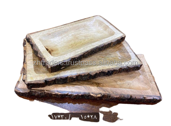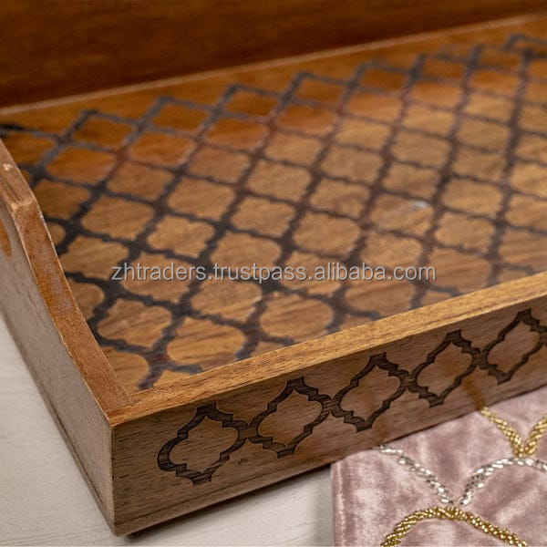 Aurora Charm ถาดงานฝีมือหรูหราพรีเมี่ยมอะคาเซียมะม่วงและไม้ชีแฮมพร้อมที่จับสำหรับการรับประทานอาหารกาแฟและการตกแต่งภายในตกแต่ง