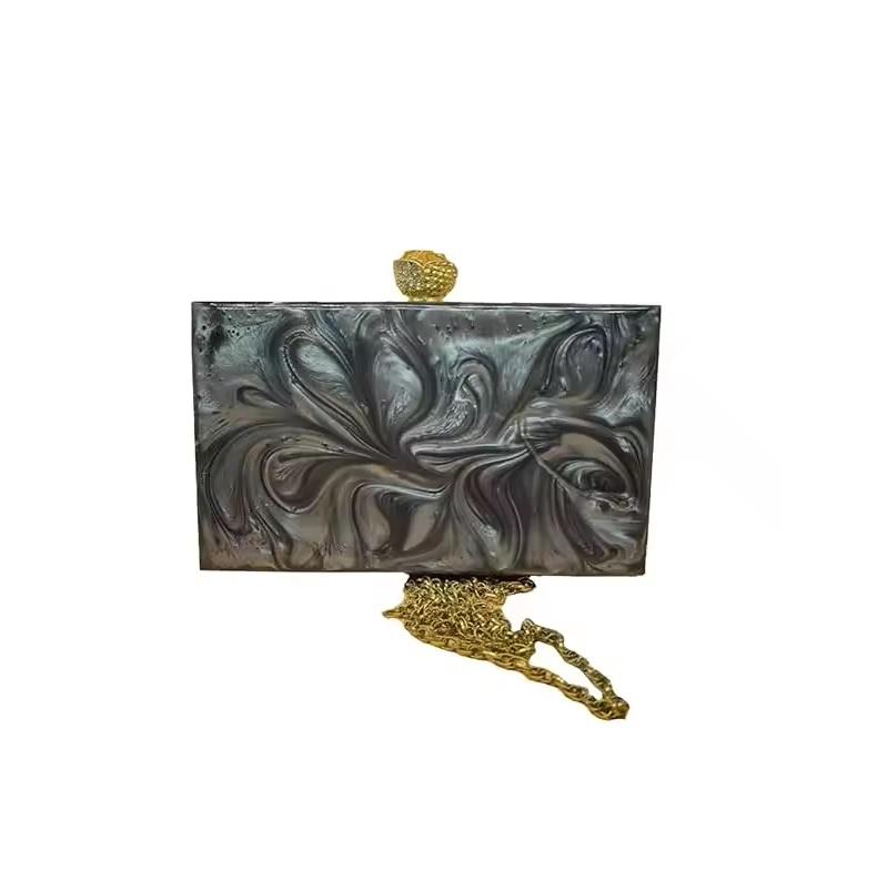 กระเป๋าคลัทช์ผู้หญิง Aurora Glaze พร้อมเรซิ่นอีพ็อกซี่ กันน้ำ ปิดด้วยแม่เหล็ก ดีไซน์แฟชั่น ประดับเพชรและดอกไม้