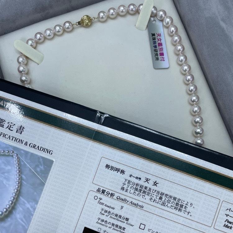 สร้อยคอมุกอะโกยะญี่ปุ่นเกรดคอลเลคชั่น ระดับเทพธิดาออโรร่า พร้อมใบรับรองการตรวจสอบของแท้