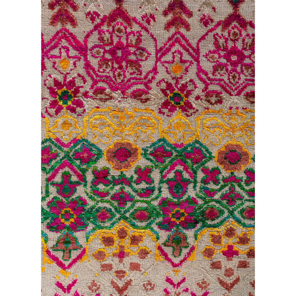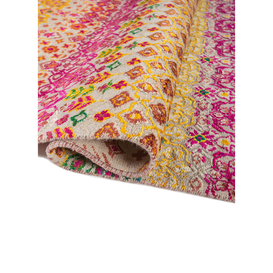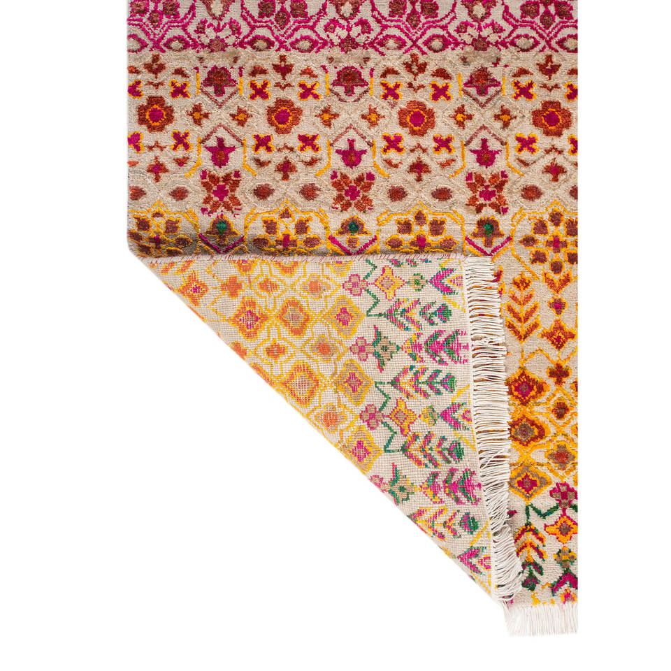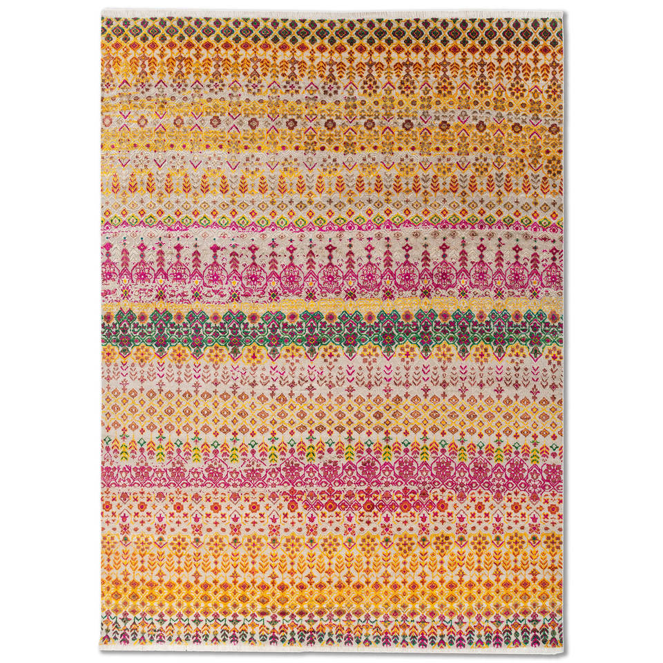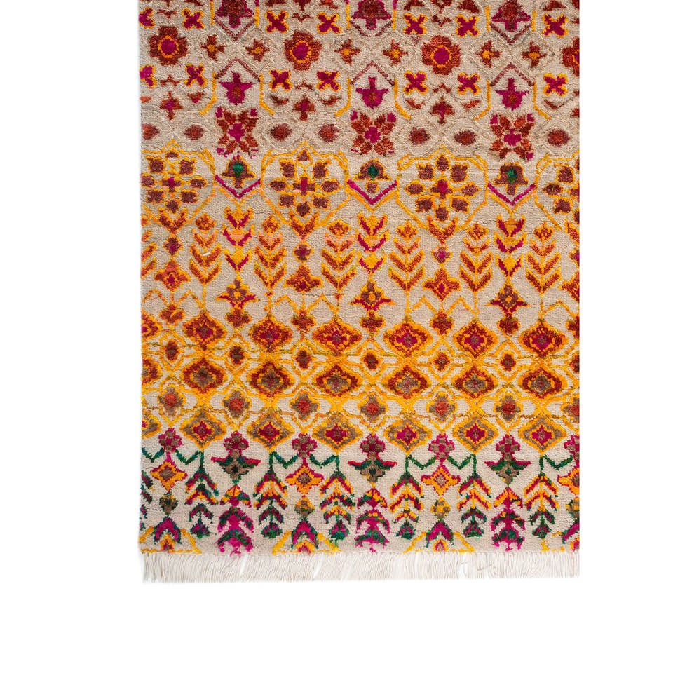 พรมขนสัตว์และไหมถักมือลายออโรร่าโกลด์ ลายเรขาคณิตและนามธรรม สำหรับห้องนั่งเล่น ห้องโถง ทางเดิน รูปทรงสี่เหลี่ยมผืนผ้า รุ่น-SKWS-139