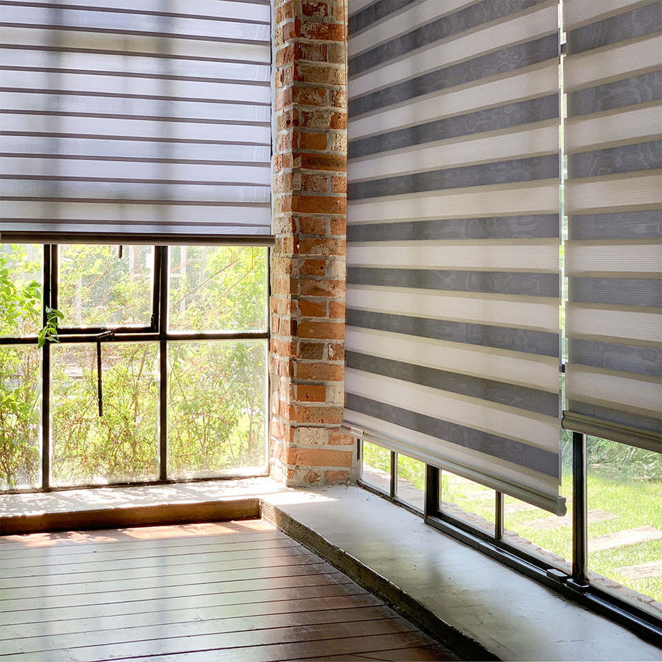 ม่านม้วนเกาหลี Aurora แบบกำหนดเองได้ สำหรับกลางวันและกลางคืน ม่านหน้าต่างระบบมอเตอร์อัตโนมัติ กรองแสงได้ พร้อมชั้นผ้าสองชั้นในตัว ดีไซน์ทันสมัยสำหรับบ้าน