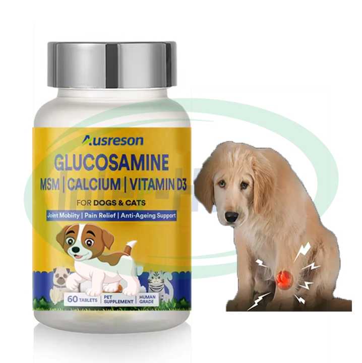 Ausreson ยาเม็ดกลูโคซามีน60เม็ดพร้อมแคลเซียมและวิตามินข้อต่อ D3สำหรับสุนัขแมว